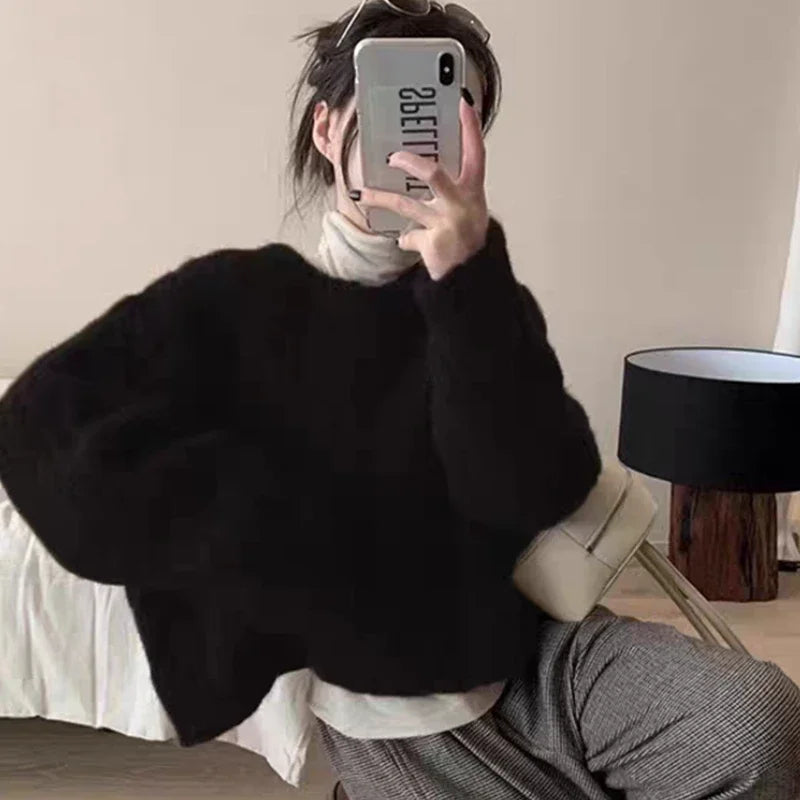 2025 Autumn Sweet Solid O-neck Knit Pullover Winter Women Long Sleeve Sweater Elegant Casual Korean Style Loose Knitted Top